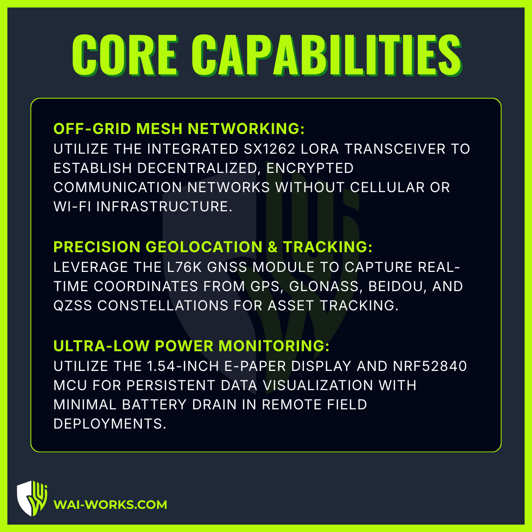 Integrated GPS: Share location data across the mesh network instantly.